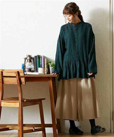 素材 品質=レーヨン46%・毛29%・アクリル25%(織物) 原産国 中国製 メーカー品番 ZZY4320D3951 コメント 柔らかなウールガーゼで自然なシワ感がナチュラルな雰囲気を作り上げてます。