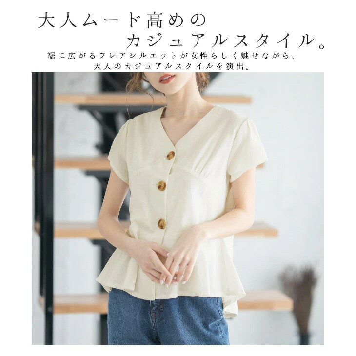 奇跡の再販!SNS大人気!! 人気ブロガーさん愛用★新色追加! 夏にもやさしいリネンブラウス ブラウス 半袖 トップス ペプラム Vネック シャツ レディース 2020夏秋新作 M/L/XL 【lgww-af1098】【予約販売:5月20日入荷予定順次発送】【送料無料】メ込