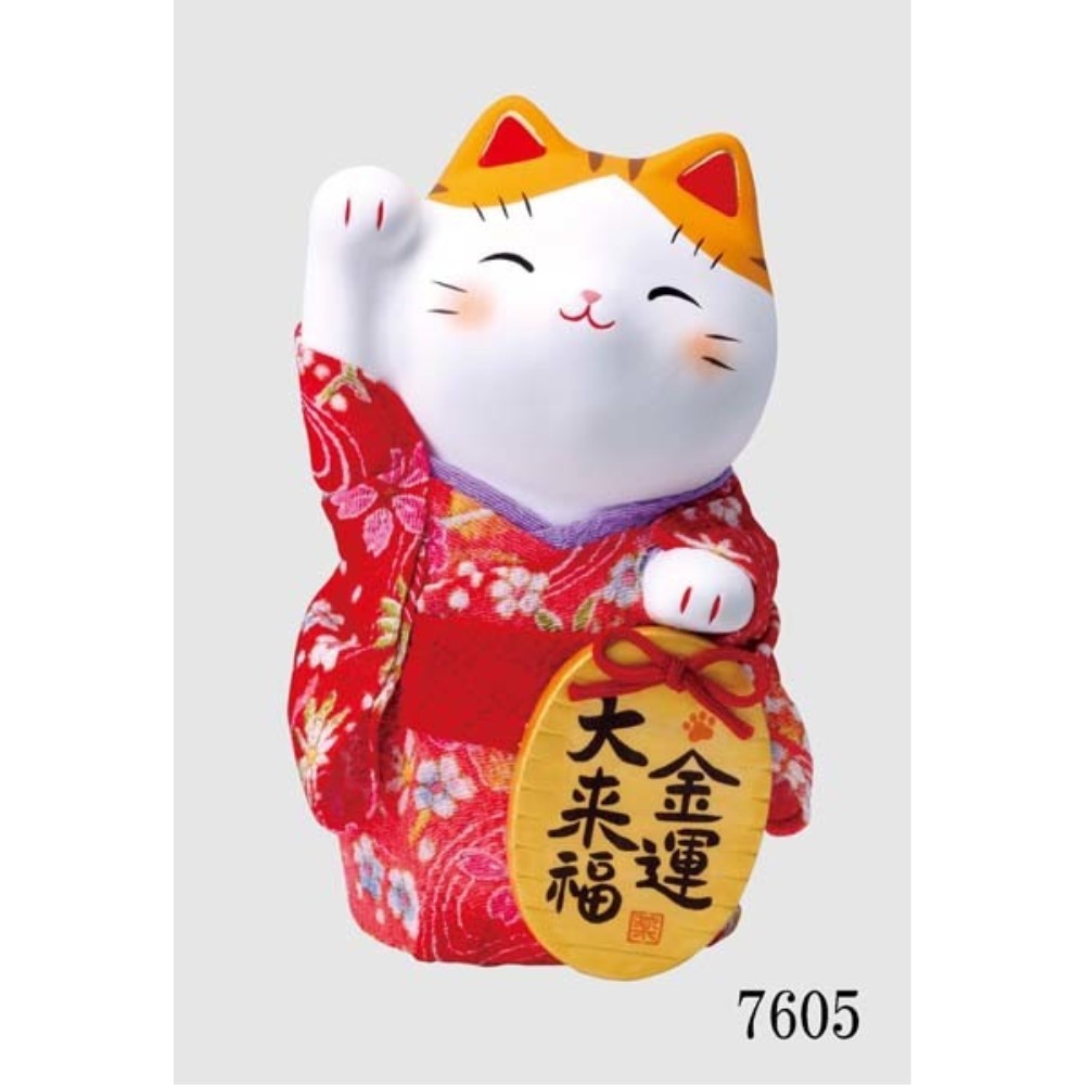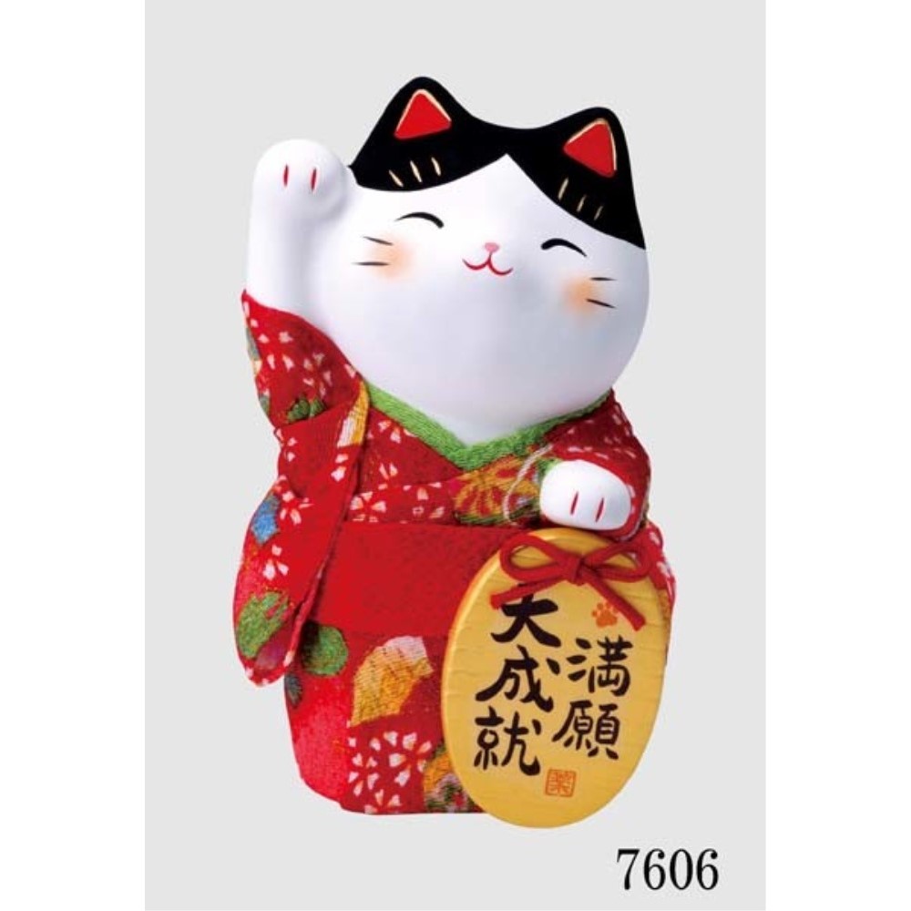 招き猫 ミニチュア 陶器 錦彩 ちりめん小判招き猫 (満願・大)