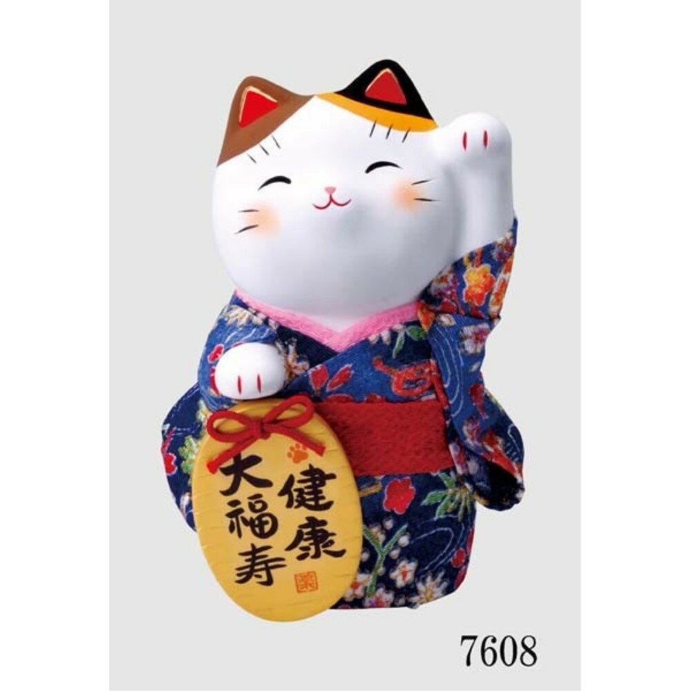 縁起物 幸福を招く 陶器 錦彩 ちりめん小判招き猫 (健康・大)