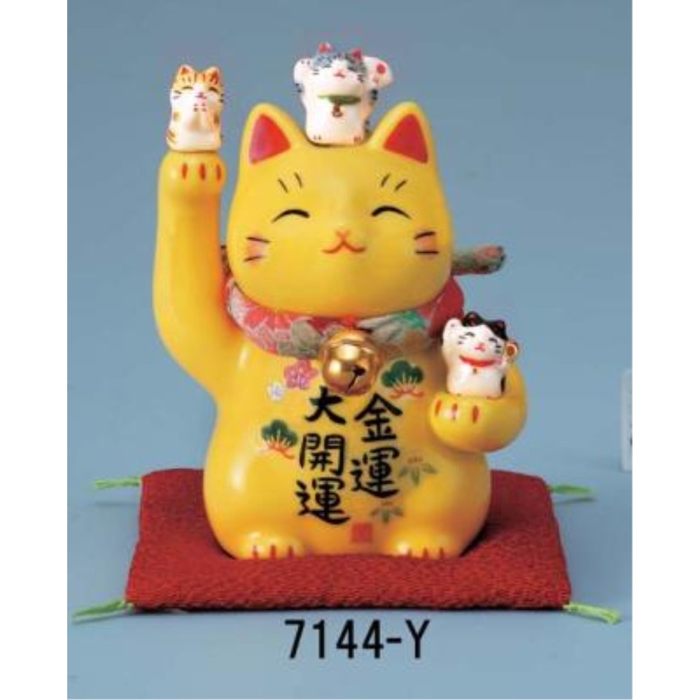 雑貨 ネコ 縁起の良い 彩絵招福大開運招き猫 4号 カラー:黄