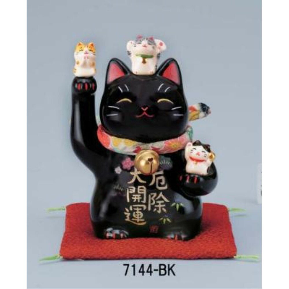 まねき猫 ネコ ちりめん首輪付 彩絵招福大開運招き猫 4号 カラー:黒